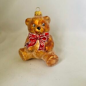 Miś brązowy z czerwoną kokardą